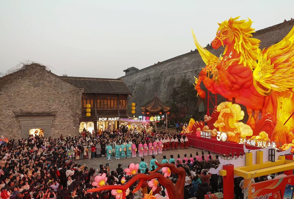 2026年2月11日,游客在南京城南老街参与点灯仪式。中新社记者 泱波 摄