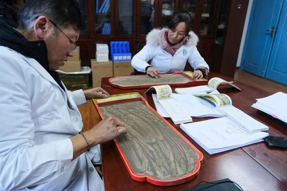 西藏自治区藏医院天文历算研究所专家展示藏历演算。(资料图)中新社记者 江飞波 摄