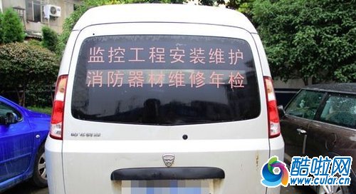 比如这家店,手段就很雷人,为了掩人耳目,店主甚至在车身上也打了“监控工程安装维护,消防器材维修年检”的广告。